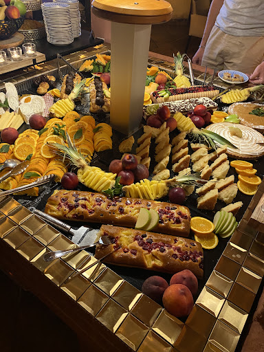 Un déjeuner avec mes 3 enfants pour la fête des mères, donc une ambiance incroyable. Des danseuses du ventre faisant tourner la tête, un buffet bien chargé proposant un large choix d'entrées froides et de plats chauds. Un joli buffet de desserts continental et de fruits frais et de delicieuses pâtisseries orientales. Le thé à la menthe, pour terminer le repas était le bienvenu. Merci pour ce bon moment passé en votre compagnie. Service irréprochable et personnel agréable, et très souriant. C'était une première pour nous, mais sûrement pas une dernière. Le monsieur au micro ( qui que ce soit, gérant, serveur, directeur, animateur), nous a bien fait rire et nous a mis à l'aise dès notre arrivée. Nous sommes repartis le ventre plein, le sourire aux lèvres et le porte monnaie pas si vide que ça! 25 € par personne pour manger à volonté, avec un cocktail et un thé, c'est tres abordable! Merci pour la rose!
