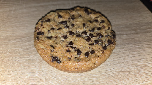 Le cookie est parfait pour les amateurs de cookies moelleux : très généreux en pépites de chocolat, épais, avec une texture très agréable. Les petits morceaux de noix ou noisette apportent une super touche en plus.