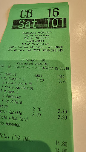Read moreCommande sur place à 15h. Certes il y a encore du monde mais on attend quand même 25 minutes pour être servis ( alors que d'autres installés après nous sont servis avant ). À l'arrivée on a aucune des sauces demandées, 2 burgers erronés qui ne sont pas du tout au même prix que ceux commandés... On va pour réclamer directement en caisse et là, personne ne nous calcule ! Il y a pourtant du monde mais on se sent transparents ! Certes les équipiers sont occupés aux fourneaux ou à la préparation des commandes, mais même la manager nous ignore. Une honte. On finit par interpeller une équipière qui amène une commande, les erreurs sont finalement rectifiées. Les 2 burgers "erronés" sont jetés à la poubelle par les employés...Là encore une honte quand on sait que des gens meurent de faim et qu'ils auraient juste pu nous donner les bons sandwichs et nous laisser les autres ( qui auraient bien été mangé par un de nous 6, même si c'était à un autre repas ). Réponse quand on fait remarquer que c'est pas terrible de faire ça : "c'est la consigne". Bien l'image renvoyée par McDo France. Bon et puis pour couronner le tout, toutes les tables sont sales, personne ne passe les nettoyer, les poubelles débordent toutes... En somme, continuez votre route pour un autre McDo ou allez acheter un sandwich à la boulangerie Ange située au même...