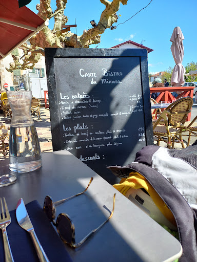On a essayé le Bistro Mimosa, bien noté au 'Les fourchettes de Claire' et nous sommes bien decus. Le menu -entrée +plat+dessert-25€ n existe plus, bien que encore mentionné sur leur site web. Donc on a choisi 2 plats : Poisson à 20€ et Entrecote à 22€. Avec le poisson ( bon) des legumes, mais meme pas al dente! Pas cuits. Entrecote avec quelques feuilles salade et frites. Mais malheureusement cuisson ratée, pas medium comme commandé, mais cuit cuit. Tres dommage. Service évasif . Carte de vin montré apres avoir amené un verre de vin proposé oralement. pas terrible, ce vin rosé corse. Les tables sur la terrasse sans charme. A coté de la rue. On ne va...