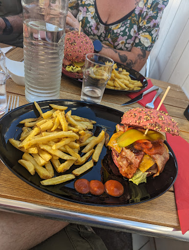 La nourriture était très bien, nous avons testé les burgers de bison : frites dignes des frites qu'on attend dans un restaurant, le bun pouvait avoir l'air un peu sec mais il est bien nourri par l'ensemble, le jeu de couleur marche bien (bun rose) La sauce ketchup pimentée c'est 20/20 Le fromage était un peu en retrait dans le burger mais c'était quand même bien bon