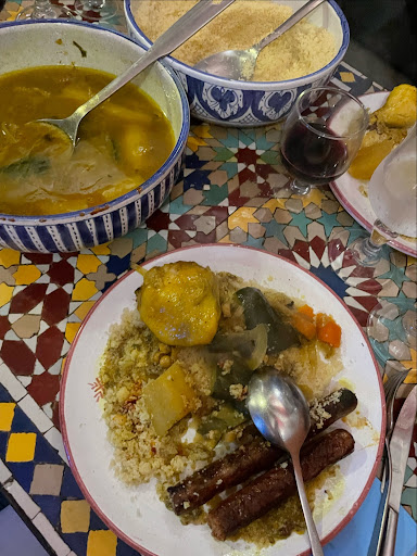 Superbe cuisine marocaine faite dans les rĂšgles de l'art. Le couscous est fabuleux. La semoule est lĂ©gĂšre et les lĂ©gumes sont croquants. Les viandes sont tendres et leur cuisson est parfaite. La fin de ce repas se termine avec des pĂątisseries marocaines goĂ»teuses Ă souhait.. On prĂȘtera attention au cadre avec des mosaĂŻques originales venant de FĂšs. DerniĂšre chose la cuisine est naturelle, pleines de subtilitĂ©s gustatives . On notera que le patron donne des cours de cuisine marocaine Ă des chefs de cuisine. Je recommande le Balaouane rouge bien charpentĂ© et...