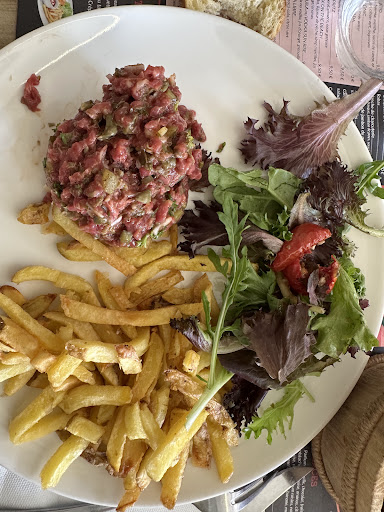 Vient ensuite une attente interminable, d'environ 1h20. Au début, nous avons vu des tables arrivées après nous en train de manger. Bon, nous nous sommes dit que le temps de préparation d'un plat peut varier, mais trois steak tartare et un burger devraient quand même être parmi les plats les plus rapides à servir... Plus le temps passe, plus nous essayons d'ironiser sur la situation. J'ai ironisé en disant qu'ils n’avaient peut-être plus de steak et qu'ils étaient partis chercher une vache dans le champ d'à côté, d'où le délai d'attente incroyable. Et effectivement, après toute cette attente, et après que nous ayons appelé la serveuse pour lui dire que nous attendions depuis 1h20, ce à quoi elle nous a gentiment répondu : "Je vous avais dit qu'il y avait de l'attente, nous sommes en sous-effectif et nous n'avons que deux bras et deux jambes", elle est venue nous annoncer, sans excuse et avec un aplomb défiant toute concurrence : "Nous n'avons plus de steak tartare, il faut prendre autre chose." Soit... L'envie de partir ne nous a jamais autant effleuré l'esprit, mais nous avons passé une nouvelle commande. À y repenser, nous avons sans doute été trop gentils vis-à-vis de la situation et de l'attitude de cette serveuse.