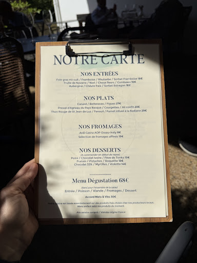 Read moreNous avions entendu parler de la bonne cuisine de ce nouveau restaurant à Cambo les bains, Nous étions deux, avec des avis partagés ce qui explique le 4 étoiles pour la note, Personnellement j'ai apprécié la cuisine et le choix de la chef sur le menu dégustation, l'attente entre les assiettes est correcte. J'avais pris l'option accord des vins sur les mets, j'ai découvert des cépages que je ne connaissais pas, c'est un bon point. Une mention spéciale pour le sorbet d'entre-plats (dont je tairais la composition). Pour l'avis de mon ami, les quantités servies étaient un peu modeste, il est resté sur sa faim, de plus une table de 7 personnes était un peu bruyante, mais le personnel du restaurant n'y est pour rien (je précise que mon ami est appareillé et que les sons rendus de ces appareils sont très au point de l'acoustique d'une salle) Toutefois au prix du menu on s'attend à une clientèle respectueuse des autres clients. On retournera bien volontiers goûter d'autres mets...