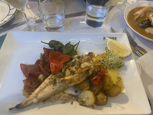 As we drove around St Jean de Luz we came across the small town of Ciboure and decided to stop at the port for our dinner. We picked Arraina’s restaurant based on good reviews it received and our desire for fresh grilled fish. we were not disappointed. We came without reservation and they didn’t have any immediate availability for outside seating at 8pm but we were able to reserve for 9 pm, so we walked around and got a drink at another location while waiting. At 9pm we were promptly seated and were recommended the sardine pate as appetizer. It was not the best choice so i would not recommend it. We also ordered the grilled ‘Merlu’ (Hake) fish which was exceptional and made our choice very much worthwhile. The fish was very well prepared, deboned, very very juicy. Services was great as well. We will definitely go back there. Highly recommend this...