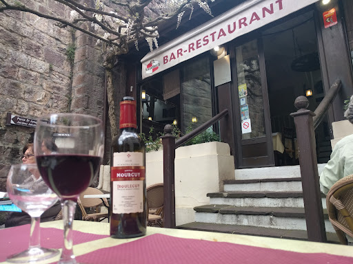 Read moreQue de choses à dire sur cette adresse... Première chose d'importance si vous visitez Saint Jean Pied de Port un mardi : la quasi intégralité des restaurants sont fermés ce jour. Pas trop le choix, celui-ci est seul ouvert ce soir. Après une file d'attente sur la rue, accueil très bourru du patron qui contrôle les pass sanitaires manu militari, jette les non titulaires comme des malpropres et installe pas bien plus gentiment les "heureux élus". Après plus de 30 minutes d'attente pour la carte (on nous avait oublié) et une heure pour le plat, on dévore affamés ce qu'on nous sert. Concernant les plats, ils sont copieux et globalement bons, produits assez frais et bon rapport qualité-prix. Les desserts sont quant à eux anecdotiques, pas foufous, glaces et coulis étant industriels. Mention pour les serveuses et serveurs qui courrent à un rythme effréné de table en table, quitte à en perdre un peu leur basque ! Quel courage,des coups de feux comme ça, cadencés par les diatribes du patron, chapeau ! L'addition est encaissée par le "Maître" qui n'est pas plus aimable à la caisse que lors du...