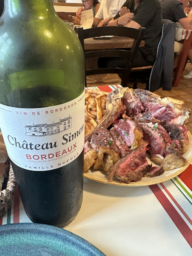 Main was a shared Cote de Boeuf which we asked to be cooked medium. Have a look at the photos - I think a good vet could have gotten it mooing again!! But weâre in France and from experience - you can ask for it cooked the way you want it and the chef will always do it their way! Viva la France!!! It was very flavourful but too rare for my wife and a bit much even for me.