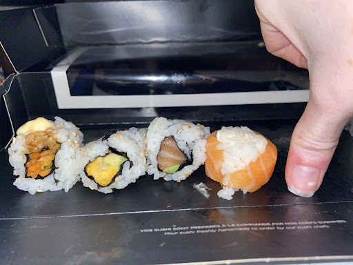 Read moreObligée de commander une box for two a 45 euros alors que je suis seule car apres appel c'est tout ce qu'il reste ! Passe encore. Préciser en commentaire uber eats que je souhaite mes 4 sauces sucrées auxquelles j'ai droit et n'en avoir que deux. Les maki salmon roll (mes préférés !!) je cherche encore le fromage dedans à croire que c'etait la fin du pot. Des maki salmon rolls également fait avec les chutes de saumon visiblement meme pas de quoi entouré toutes mes pièces !! Et quelque chose qui ressemble a un spring saumon avocat qui ressemblait plus a une boule de riz avec un bout de saumon. Pour ensuite retourner sur uber eats et voir que la box que je voulais initialement commander (a 20euros) est à nouveau dispo. On se fout un peu de...