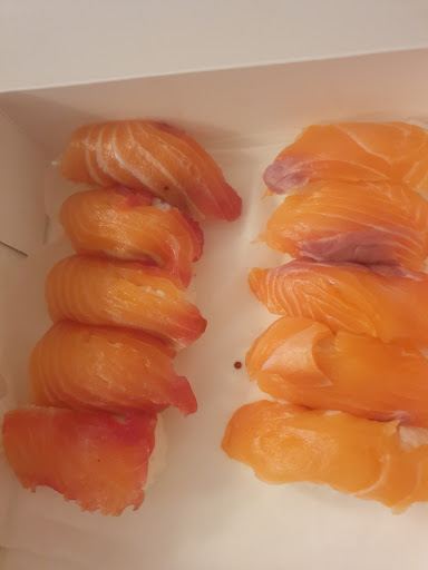 Read moreJe suis dégoûté j'avais invité des amis a manger chez moi javais commandé 2 boites de sushis a emporter je vous laisse apprécier , la présentation et les morceaux gris du saumon qui gache le goût et la texture en bouche, quand je suis repassé pour montrer la 2eme boîte de sushi (on a mangé la 1er boite, pour voir si malgré la présentation désastreuse, le goût était la, pas du tout...), je l'ai montré au serveurs, il m'explique que "c'est comme ça qu'il font au Japon"... on me propose de couper les morceaux gris sauf que les morceaux font le 1/4 du sushi donc vu le prix payé même pas en rêve, bref je vais essayer de rattraper la soirée en commandant des pizzas... Suite a votre réponse, je vous demande juste est ce que un sushi doit être, fondant en bouche et facile a manger ou bien filandreux, caouchouteux et difficile a macher ? Mon avis et celui de mes amis n'est pas malhonnête, je ne suis pas heureux de vous mettre un mauvais commentaire car payer 46e pour 20 sushis je voulais vraiment que ce soit bon, d'où ma terrible...
