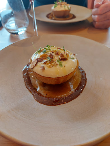 Restaurant gastronomique singulier : salle minuscule avec 14 couverts, décoration moderne et soignée dans des teintes naturelles, terracotta, beige et vert, belle vaisselle d’artisans, argenterie dépareillée, couteaux siglés, carte réduite à 3 formules, déjeuner en semaine à 34€, menus en 4 services à 56€ et 6 services à 74€ sans indication de plats si ce n’est la liste des produits de saison et locaux travaillés pendant la période. La surprise passée, la suite est à remettre avec confiance dans les mains expertes des propriétaires : lui excelle en cuisine, elle assure en salle et conseille les accords mets-vins. L’expérience est magnifique dès les amuses bouche avec l’olive en trompe l’œil qui craque délicatement et fond dans la bouche. Le reste est à l’avenant : des assiettes travaillées avec finesse, des produits simples mais sublimés par le chef, des associations délicates, des jus délicieux et des pralinés d’oléagineux en fil rouge déclinés jusqu’au dessert. C’est beau, c’est juste et c’est très bon ! La découverte se mérite, la réservation est obligatoire pour vivre un moment d’exception. Déjà repérée par le Michelin, la table devrait être rapidement récompensée. Bravo aux deux jeunes propriétaires, nous avons vraiment apprécié le repas en 4 services et allons en parler...