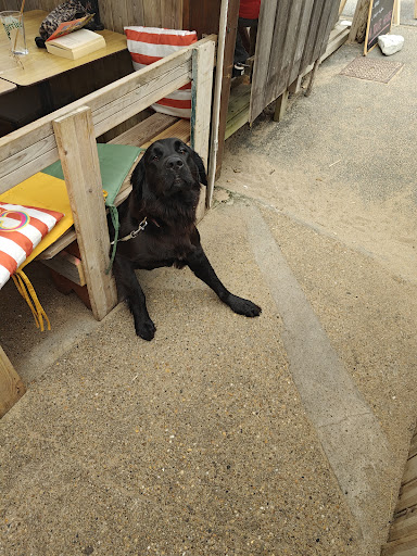 On a aussi un grand chien. Mon chien veux toujours passer ici et je sais pourquoi. Elle est très bien soigné, reçoit toujours qqch a manger et tout les serveurs le donnent de l'attention. Quesque tu...
