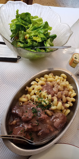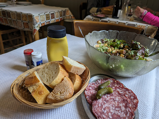 What a find! A local’s eatery, only open for lunch during the week. This was truly an experience and the highlight of our trip to Beaune! A simple fixed menu at a very reasonable price. Every table is served a large bowl of salad with a starter of cold meat and gherkins. Followed by the dish of the day. We had a choice between the duck or sausage served with thick home cut chips. A cheese board is then passed around with a wide variety to choose from. You help yourself. To finish, a sweet dessert was distributed. On the day, it was the lightest fluffiest of eclairs. The portions are generous and dishes served family style so make sure you go with an appetite. The owners are lovely and down to earth. Honestly the best place we went to in Beaune. So much so that for the 5 days that we were there, we could not walk past the place without our dog dragging us...