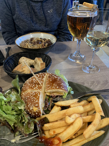 Ate and drank here last night. As a couple of none speaking French pair, we were very impressed by the lovely young member of staff who was very patient with us and helped us with our food and drinks orders. My husband chose the beef bourgeon with pasta and I chose the bacon and cheddar burger. Both dishes absolutely superb. We ordered a glass of the local red and it was very good, however in hindsight we should have opted for a bottle as at €8 per 125ml it would have worked out cheaper. Ambiance In restaurant was wonderful and lots of locals appeared to dine here too, which is always a good sign. Thank you to the staff who helped us out. Highly recommend...