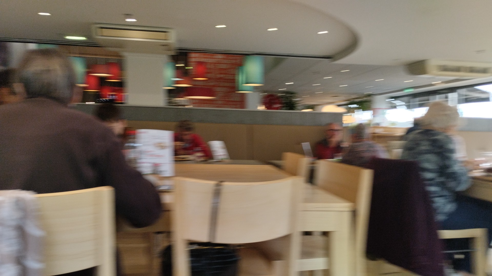 Read moreWe stopped off here for a simple breakfast and that’s pretty much what we got. I mean, it’s a restaurant/cafe in a small mall, so you probably have a good idea of what you’re going to get. For €6.20 you get a croissant or pain au chocolates (but not a pain au raisin -that you would have to buy separately); a bread roll with butter and jam; and a coffee. And (this was a pleasant surprise) freshly squeezed orange juice - as in, you get to watch the oranges being squeezed). The food was OK, the coffee was good and the juice was lovely. Service was quick and friendly. The place isn’t exactly atmospheric, but you’re in a mall, so what would you expect?