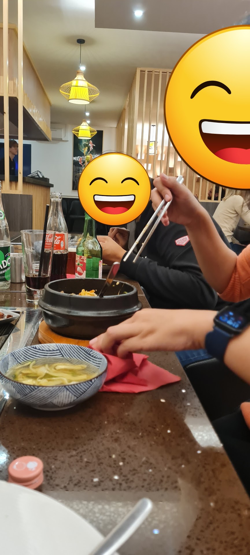 Read moreQuelle belle journĂ©e ce dimanche 10 novembre au dĂ©jeuner... Comme toujours nous avons Ă©tĂ© reçus avec la gentillesse coutumiĂšre de la Maison... Oui, une Maison CorĂ©enne oĂč l on se sent bien, et malgrĂ© une salle bien remplie un service personnalisĂ© que nous apprĂ©cions. Nous nous sommes rĂ©galĂ©s, ma femme et moi de raviolis avec un bon verre de Chardonnais en apĂ©ritif, d un Kimchigeon ( galette typique), entrĂ©e Ă©picĂ©e mais sans trop puis en plats, bĆuf sautĂ© Ă la corĂ©enne et mon grand plaisir, un Bibimbap au poulet, dĂ©licieux et copieux...Le tout accompagnĂ© d un St Joseph qui est Ă la hauteur d une cuisine Ă©picĂ©e...mais raisonnable...! S' en suivront des glaces au thĂ© Matcha pour la digestion, deux bons cafĂ©s, une addition raisonnable, et toujours le mĂȘme sourire de nos hĂŽtesses, identique Ă celui de l accueil ! Permettez- moi un conseil, il est quelques fois prudent de rĂ©server... ce dimanche, les trois belles salles Ă©taient quasi complĂštes ! Bon...