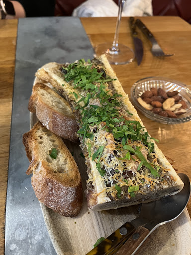 I had bone marrow with caramelized onions and parmesan and toasted baguette on the side (10€), Noix de Saint Jacques scallops with shiitake mushrooms, spinach and butternut as main dish (24€) with an excellent Macon on the side (6€/glass). However, it was the dessert that stole the show. A fondant chocolat noir, crispy outside and perfectly liquid inside, with passion fruit, white chocolate mousse and biscuit crumbles on top (10€). The balance of tastes was extraordinary and I struggle to remember if I have ever had a better chocolat...
