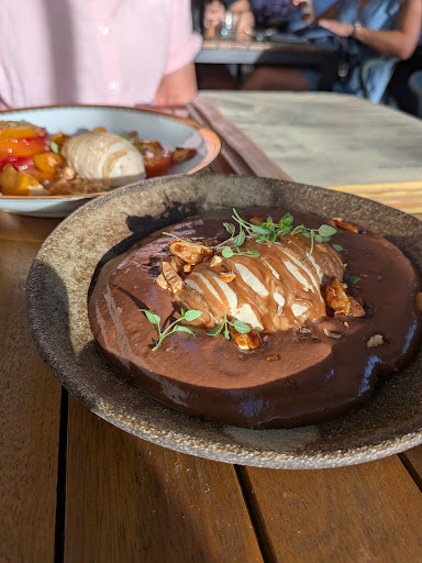 On Minus: Ants on the table and very dirty umbrellas over our heads. Food was too wet and gishy for my taste. The lobster tartar is 85% water melon. Fresh, watery taste,, yet not a premium starter at €23. The Duck, canette, was ok cooked. So why drown an already dead bird in a bland consommé? Skin could still have been crispy if not. The dessert. My kids did better dishes freebasing in the kitchen at 10 years old. Cookies, chocolate mousse, and roasted peanuts all mixed to a turd-o-rama. Comfort food, bien sur, but Michelin level, I think not.