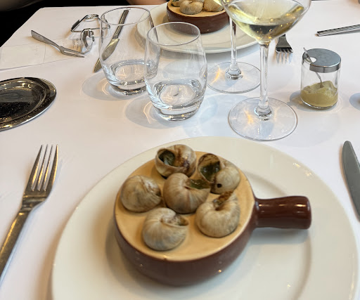 I went for dinner on a Saturday night at 7pm (right when they open) without a reservation looking for a table for 2. The earliest available opening they had was 9pm, which was fine, I was expecting that after reading the Yelp reviews. I ordered a fixed menu of gougere with snails, foie gras and sweet garlic cream, and a sea bass main, with an "infinite chocolat" dessert. All courses were good, except the sea bass had a tendon running through it that disrupted the skin in each bite.