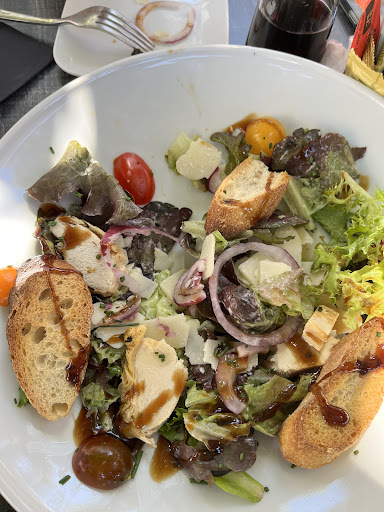 Full disclosure right away- the only reason I gave two stars was to reflect the beautiful location of Beaune & perfect weather on the day of our unfortunate experience. We ordered a Cesar salad & were served something that was not even close to that (please see the first photo). When I inquired about the dish, I was told it was definitely Cesar “ because it had chicken in it). By the way I completely agree with the previous review that grumpiness is felt not just seen in this cafe. Then we ordered our dinner, beef & chicken. We waited 40 minutes (I’m guessing this was our punishment for questioning the Cesar recipe) - the rest of guests who came with us were long gone. The chicken was okay but my Cote de Boeuf was absolutely not chewable- I left most of it on the plate. But what’s interesting is that the garlic butter was so frozen that it stayed in the same shape until the rest of our dinner. (please see the second photo). Bottom line- terrible place to eat & experience the beautiful...