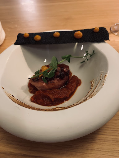 Read moreUne expérience un peu mitigée niveau cuisine. J’ai pris un apéritif maison (dont je n’ai pas trouvé le prix sur la carte ou autre j’ai donc fais confiance) qui était bon mais son prix de 18 euros m’a vraiment refroidit à la réception de la note. J’ai pris une formule menu à 49 euros. L’entrée était le poulpe snacké ; j’ai eu un petit poulpe (qui aurait pu se manger en une fois)dans un peu de concentré de tomates. C’était bon mais je m’attendais à ce que l’entrée soit un peu plus consistante et avec plus de recherche niveau gustative. Le plat principal était du parmentier de bœuf avec de la purée de pommes de terre en dessous; la présentation était correcte mais sans grand relief; le goût était pas mal mais ça manquait vraiment de recherche. Le trio de fromages était correct (un des fromages m’a particulièrement plu) mais pas extraordinaire non plus…En revanche le pain à table était très bon. En résumé un repas bon mais peut mieux faire surtout pour le prix final et le « standing » d’un hôtel 4 étoiles.