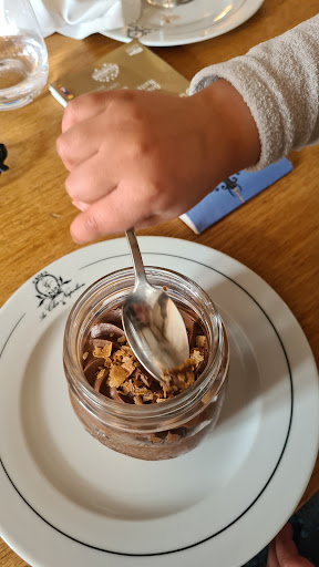 J'ai choisi le menu à 39€ et ai eu la salade en entrée, le poulet Gaston Gérard en plat et la mousse au chocolat en dessert. Pour un restaurant dont j'avais tant entendu parlé (en bien), quelle déception. C'est simple (trop?), peu copieux, beaucoup de sauce et une fleurette de brocolis dans mon plat, la mousse au chocolat trop banale (et écoeurant avec encore une fois, trop de sauce caramel). Mon mari a choisi le menu le plus cher, à 44€ je crois, et celui-ci était plus recherché: escargots en entrée, idem que le menu à 39 soit un poulet Gaston Gérard, un ensemble de 4 fromages succulents et un dessert (mi sorbet cassis mi pain d'épice) écoeurant et donc non terminé. Nous avons donc trouvé que cela était trop simple et les accompagnements trop chiches. A la carte cela aurait été mieux peut-être?? Mention spéciale et très négative qui fera que nous n'y retournerons pas: la "limonade artisanale" à 5€ servie au verre mais sans voire la bouteille (strictement interdit) et idem pour le verre de vin (soit disant un Fixin 2022 dont on a jamais vu la bouteille, pour la modique somme de 11€...). Nous étions sur une table double dont la banquette était bien trop haute par rapport à la chaise d'en face: on mange cassé en deux... Donc non, nous ne recommandons pas et n'y retournerons pas. Quand on se donne une impression d'un certain niveau, il faut que ça déroule derrière, et ça n'a pas du tout été le cas. Nous avons clairement mangé en entendant les serveurs à longueur de temps; encore une fois, nous n'avons pas passé un repas tranquille, alors que la salle n'était pas pleine. Il y a nettement mieux, et ce pour un rapport qualité/prix amplement meilleur. Pour finir sur une note positive: les toilettes étaient d'une propreté irréprochable.