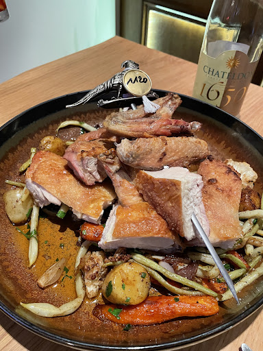 The young waiter was also very nice and helpful and the food was absolutely perfect. We wanted to get the Bresse chicken "for two" as our main and the waiter suggested that in this case we just have one starter as the chicken was more for three people despite what the menu said... Well, we did as he advised but still couldn't eat it all even though we'd have liked to. We took half home for lunch the next day (amazing) and that way managed to try a dessert -...