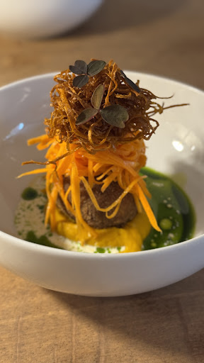 But the dishes were unfortunately really underwhelming. The menu felt dated and uninspired; like getting iceberg lettuce on a stick (seriously?!) as a side with the pasta. The first course with the crispy soft boiled egg was okay, but the carrot and dill sauce was a bit weird.
