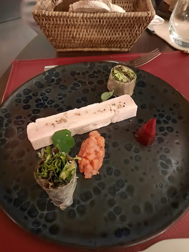 Read moreRestaurant correct sans plus. Pour les prix exercés, plutôt élevés, on s'attendait à des saveurs recherchées et travaillées. Malheureusement, la qualité n'est pas au rendez-vous, et certainement pas à la hauteur des prix. Les entrées sont simples, basiques comme dirait Orel. Les portions sont très petites. On a du mal à déceler les goûts, qui sont peu francs ; on a même pensé qu'on avait le Covid : on n'a pas senti le goût guanciale dans l'œuf parfait. Tataki de thon trop cuit à mon goût, assaisonné de manière classique, très peu d'intérêt. Le bœuf est servi en parti avec le même accompagnement que l'œuf parfait pris en entrée, c'est un peu dommage, comme diraient Flo et Oli. Le dessert framboise rhubarbe était excellent, bien au-delà du reste du repas. Les boissons sont très chères. Trop chères. Service sympa. Globament un manque de finesse des saveurs et des prix bien...