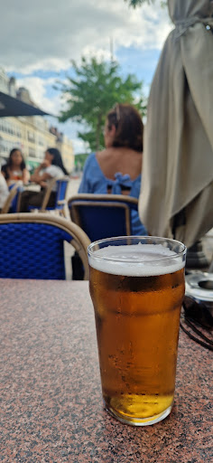 Our first bar on the main square and Flat Eric is recognised by a local "character" ( see Billy Connolly for local character definitions) ..ahh Mr Oizo..Flat Beat! A lovely interior for Madge to relax with a rosé wine. A bit cool outside for June in France but better than back home. My first pint of Fischer beer. 6.90€ Lots of outside seating overlooking the square and Merry go round ride. Probably an upstair winter room but roped off today. Outdoor speaker a bit...