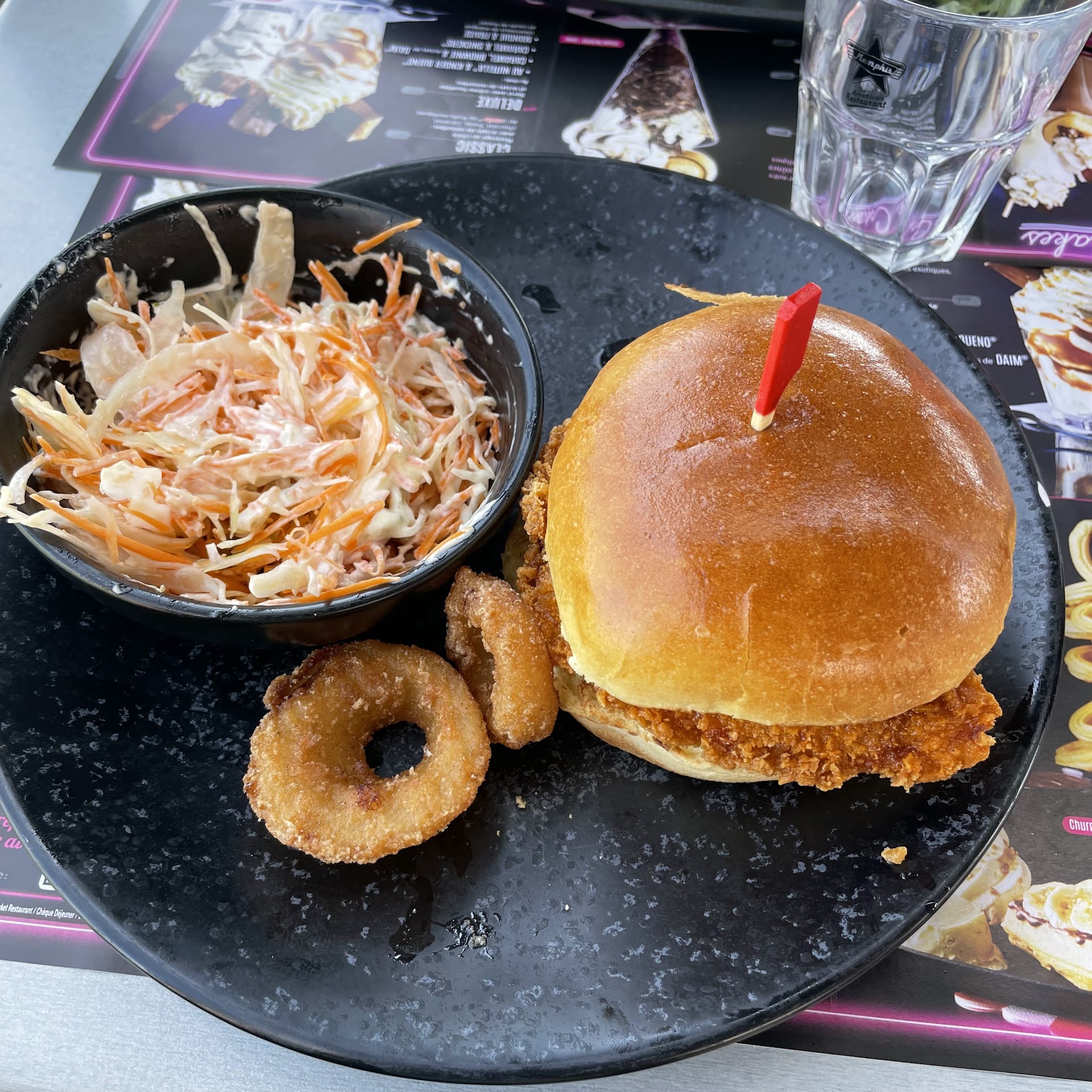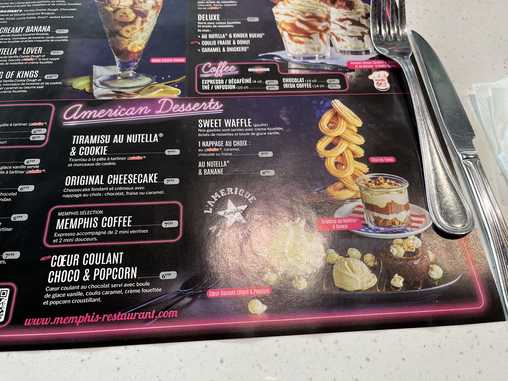 Read moreCe dimanche 5 mai, nous avions eu envie de se faire un petit plaisir avec mon conjoint. Nous ne somme pas déçu de notre passage malgrès un petit peu d'attente qui me semble normale pour un dimanche. L'ambiance est super sympa avec la musique rétro. L'accueil est agréable. La serveuse est adorable et très serviable. On trouve une quantité raisonnable dans les assiettes. Nous avons pris : Normalement 8 boules mozza tomate (on en a eu 9) servi avec la sauce memphis super bon et des rinces doigts (je tiens a précisé que je n'ai jamais vu cela dans d'autres restaurants). Mon conjoint a choisi sa boisson à volonté (7 up) pour 1€ de plus. Je trouve cela vraiment très original, pas besoin de demander pour être resservi la serveuse l'a fait automatiquement. Mon copain a pris le bruger memphis, une sauce excellente un burger conséquent et appétissant servi avec un panier de frites, deux oignons rings et la sauce memphis. Pour ma part j'ai pris un burger super bon de taille convenable servi avec la même chose que mon copain. Pour son dessert un sundae deluxe caramel snikers très bon d'une très bonne quantité. Et pour finir mon dessert la coupe nutella lover avec 2 boules de glaces des bicuits nutella, le tous nappé de nutella et de crème fouetté excellent😊 On c'est bien régalé et nous en avons eu pour lui entre 30 et 40 € et moi environ 30 €. Pour l'adition, nous avons eu deux minis carambars (trop chou). Résumé, une bonne soirée, un ventre bien rempli et une addition un petit peu salé 🤣 (mais...