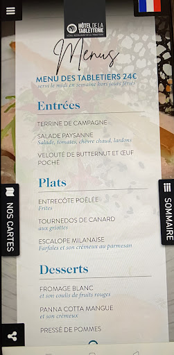 Read moreOnly had their 24 eur menu but highly recommended. It can be ordered for lunch, and for dinner if you are staying at the hotel with the “soirée etape” rate. Had the velouté, the entrecôte and the pressé de pommes: please don’t miss this dessert if you are here! Relaxed atmosphere also to have a drink. I have been here twice and I would still repeat if...
