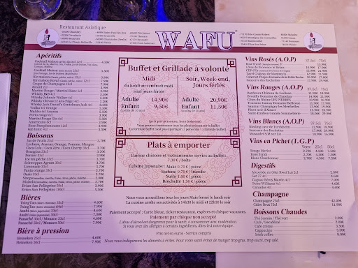 Read moreHello reader. We ate dinner at Wafu restaurant. It a all you can eat restaurant that offer a variety of different foods, including fresh snails and/to cooked beef, French cheese, and deserts. We tried almost everything, but the best thing was the beef with onions na soya sauce. The chocolate cake was delicious. A nice place with friendly staff. The price per person is 21€90. You should try them out...