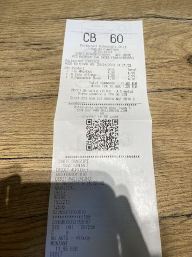 En visite à DELLE chez mes parents..ville que j'ai quitté ya 4ans pour là Suisse, je me suis arrêté avec mon fils pour manger Mac Do .. Passé là commande à là borne nous nous installons non sans avoir demandé à un personnel de bien vouloir nous nettoyer une table vraiment sale.. Commande numéro 43..nous attendons sagement notre tour . Les minutes passent..heureusement ya le journal du jour..( tactique pour aider à faire attendre..pas bêtes Mac do ).. Au bout d'un LONG moment mon fils me fait remarquer qu'il servent des gens après nous et effectivement c'est numéro 45..46..mais pas le nôtre. Je vais au comptoir et je demande des nouvelles et ont s'aperçoit que notre commande est dans un coin..oublié..!! Bref ont pars un peu déçu et fâché..et en route mon fils mange..FROID bien sûr .. et là les nuggets par 9 ne sont en fait que 6..!! Une erreur de boisson..eau au lieu de thé froid et j'avais demandé une bière 🍺 au lieu de l'eau car à là bornes là bière étais absente..et ben ils ont réglé le problème puisqu'ils ont carrément oublié là boisson..!! Inadmissible pour un si petit Mac Donald.. Au début du Mac do de DELLE c'était que des avis négatifs...c'était sale..erreurs incessantes..bref le début étais difficile..hors plusieurs années après les avis sont toujours plus mauvais que bon et rien n'as changé.. À Delémont en Suisse le Mac Donald est de taille quasi identique et je vous promets que vous pouvez manger parterre..ils ont même nombre de personnel mais certainement mieux formé..mieux encadré et surtout respect du client et là première qualitée souhaité par cette établissement..un peu plus chère certes mais au moins vous avez un service à là hauteur. Je regrette vraiment que l'établissement de DELLE ne ce remette pas en question et bottes 👢 en touche à répondre une adresse mail pour remonter nos mécontentement.. Un peu lâche de là part de là direction de DELLE où peut-être faudrait ils les orienter sur un sites de leçon de marketing et de Savoir vivre..alors peut-être le Mac Donald de DELLE deviendra t-il un lieu agréable à fréquenté.. En attendant ce jour improbable..heureusement..là concurrence est là.... A bonne...