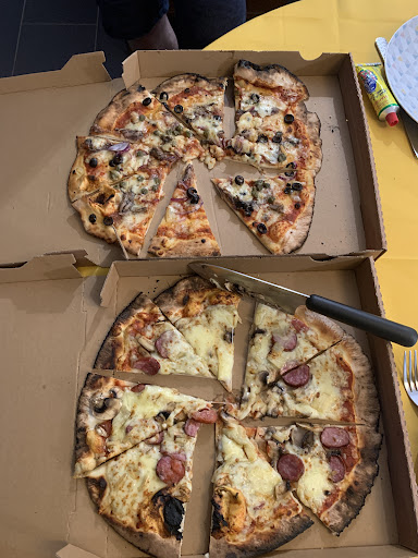 Read moreLarge choix de pizzas au feu de bois, seulement à emporter ou en livraison car, il n'y a pas de table pour manger sur place. Possibilité de se garer juste devant si pas trop de monde et de commander les pizzas en 2 formats (pour 2 ou 4 personnes), à savoir que pour 2 elles sont de tailles très raisonnables. Pas plus chères que des domino's pizza ou autres chaines et bien meilleures.