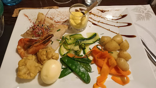 Read moreNiveau qualité de la nourriture, rien à dire, c'est très très bon. Niveau service c'est un peu plus compliqué. Nous n'étions que deux et entre notre entrée dans le restaurant et le moment où nous avons reçu nos plats il s'est écoulé une heure... Les serveurs ne sont que deux en salle (un homme et une femme), et quand il y a beaucoup de monde ils sont débordés, surtout l'homme, antipathique et qui nous expédie à vitesse grand V dès notre arrivée. De plus ils ne donnent pas de cartes physiques, juste un QR code qui vous renvoie sur leur site internet où vous pouvez consulter les plats. La modernité c'est bien, mais pas pour tout le monde (personnes agées etc.)... Autre problème : la carte des vins n'est pas dispo sur le site et à aucun moment on nous l'a proposée. Nous demandons 2 verres de beaujolais indiqué sur l'ardoise des suggestions à 3,5 : plus en stock, sur les conseils éclairés du serveur on part sur autre chose et on se retrouve avec une petite surprise au moment de l'addition, avec 2 verres à 5,5 chacun. Moralité : dites au serveur d'apporter la carte des vins et des cartes papier afin que tout le monde puisse choisir...