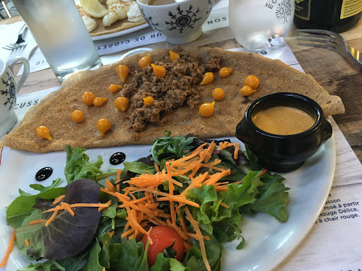 Read moreÉtant végétarien j'ai demandé à remplacer une viande dans ma galette par quelques légumes grillés, et j'en frétille encore des papilles ! Le dessert vous mettra en extase (et vous fera un peu culpabiliser ah ah) Le personnel est absolument-fantastiquement-sympathique et plaisante volontier avec vous. Ils se sont également montré très commercial avec nous. Au vu de la prestation fourni le rapport qualité-prix est tout à fait correct. Bref, allez-y les yeux fermés et la bouche ouverte, et n'oubliez pas d'acheter un mini bocal de caramel beurre salé en...