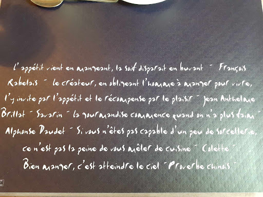 Read moreUn jeune serveur qui nous dépose 4 verrines sur la table et qui s en va aussitôt Je le retiens en lui disant merci de nous présenter ce que vous venez déposer À peine l L’apéritif servi et nous demande déjà ce que l’on souhaite. Comme menu. Je lui dis que nous sommes dimanche le jour de la Fête des Mères et que nous avons notre temps. Elle lui fait comprendre qu’il est bien agité. Par ailleurs, je suis étonné que le premier menu Comprend, fromage et dessert, et que les deux menus suivant , comporte fromage ou dessert Le plus onéreux comporte le fromage avec un supplément encore de trois euros par contre Déçu, par ce que j’ai pris terrine de brochet et...