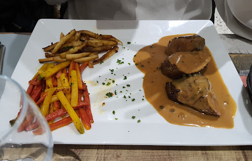Read morePremier point noir,le parking est extrêmement petit,j'ai du garer la voiture à plusieurs centaines de mètres du restaurant, ensuite mes enfants,mon mari et moi même nous installons à une table où l'éclairage au dessus de nos tête clignotait sans arrêt(très désagréable ),nous avons donc demandé à changer de place,ce qui a été fait. Pour l'apéritif,mon mari à commander un ricard,on lui apporte un apéritif qui ne ressemble pas du tout à du ricard et qui n'a pas du tout le même goût,sur ce mon mari interpelle la serveuse pour lui en faire part,quelques minutes plus tard elle rapporte cette fois-ci un ricard(le vrai),en s'excusant et ne comprend pas pourquoi l'autre n'avait pas le même aspect car il sortait de la même bouteille.. Ensuite on prend notre commande,pour ma part j'avais commandé une escalope de veau qui à ma grande surprise ou à mon grand désespoir etait vraiment petite,recouverte d'énormément de crème et trop cuite (donc très déçu du repas), Pour mon mari,il a commandé une bavette d'aloyau cuisson saignante,on lui a apporté la bavette mais la cuisson n'était pas celle demandée auparavant et malheureusement trop cuite à son goût. Pour mes enfants rien à redire. Lorsque l'on a payé l'addition,on s'attendait à ce qu'il fasse un geste pour l'apéritif(le ricard),qu'il nous soit offert mais rien. En conclusion,nous avons été assez déçu de notre soirée dans ce restaurant. Certainement que la partie pizzeria de ce restaurant est meilleure mais malheureusement côté plats(viandes),ne...