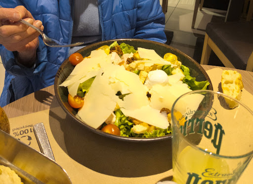 The food was absolutely lovely and rather big portions as well. I ordered the steak tartar as I haven't had that in ages, I'd say the portions were twice (if not more) than what I am used to, with chips and a bit of salad. Tasted absolutely delicious. We also had a caesar salad which was enourmous and a rather nice filet steak. Our daughter had the snails, though she was slightly disappointed as they didn't come in their shell/snail house, but in edible pastry shells, never the less she really liked and finished them all. I do like it salty, but for me the chips/french fries were a bit on the salty side, but tasted lovely nevertheless.