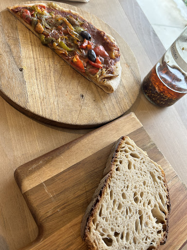 A cute little cafe in Ambérieu. The ambience is very relaxed, you can work there or read a book or chill. Service is quick and staff is polite. However, the food is not that great. I had their vegetarian pizza and a slice of one their sourdoughs. The pizza was okay and the sourdough was dense and undercooked. I could barely eat the sourdough, it was that bad. Their vegan hot chocolate drink though compensated for their bread! It was one of the best hot chocolates I’ve ever had (and I’m quite particular about my hot chocolate). It was light and flavourful and just perfect. Probably because of the oat milk that they use. So my suggestion- go there for their hot chocolate (and nothing else) and enjoy...