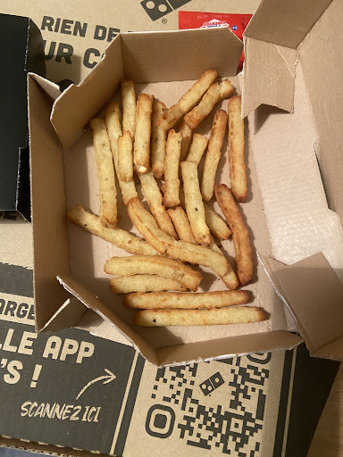 Ça fait 3/4 fois que je goûte Dominos sur Bergerac jusqu’à là rien a dire car on commandé en livraisons , la livraison en elle même top ! Les pizzas top! Pas mal de nouveautés qu’on avait pas en ville et surtout de la concurrence à la boîte à pizza 😏donc jusqu’à là pas de soucis. Ce soir on a eu l’idée d’aller prendre des pizzas à emporter et malheureusement c’est là où on a était déçu .. déjà 40min pour deux pizza je trouve ça long ,seulement deux places assise ..et du coup pendant ce temps on a eu l’occasion de voir l’incompétence des vendeurs… pas capable de diviser et de multiplier .. demande le nom de la commande plus de deux fois par minute et fait espère comme quoi la commande est prête alors que non enfin bref la cuisine tout va bien mais le service faut faire quelque chose .. les commande en livraison sont passer avant les personne à emporter enfin bref pas ouf comme expérience. Cependant la cuisine top, même si la pâte de la pizza c’est la même que la boîte à pizza au moin vous avez plus de choix que eux c’est déjà pas mal. Les beignets au chocolat une vrai tuerie! Mais vous avez déconner sur la portion de frite en moyenne 5€ la boîte et remplis au 1/3 bref les pizzas sont bonnes merci de m’avoir...