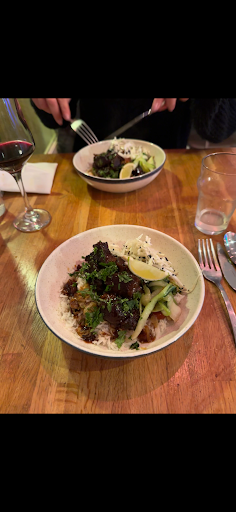 I just happen to stumble on this charming restaurant tonight. The waiter Tim was friendly, knowledgeable about the menu and wine choices and spoke English! They have a weekly set menu. Tonight was a leek miso salad or beet salad. The entree was butternut gnocchi with mushrooms or tender pork tenderloin with a side of delicious sautĂ©ed mushrooms. I had the leek salad and the pork tenderloin. So delicious! The plates were artfully presented and suitable quantities. With a lovely glass of red wine from a long list of choices, I could not be happier! I wish Tim and Dave, the expert chef, all the best of luck. Try it, you wonât be...