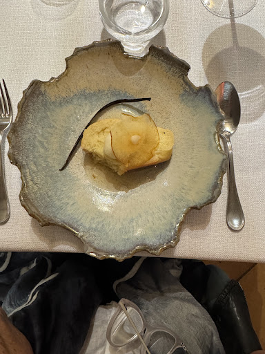The meal itself was, quite simply, perfection. The five-course menu dĂ©couverte (âŹ54) offered dishes that were not only unusual but uniqueâfood that surprises you, delights you, and never once feels contrived. I wonât give away too much detail, as discovery is half the pleasure, but one standout was an amuse-bouche of gazpacho with a foie gras crĂšme brĂ»lĂ©e: playful, refined, and executed with such confidence that it set the tone for the entire evening.