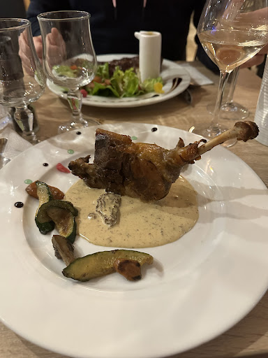 Our constructor recommended this place to us and it was superb. We would not have gone in if it hadn't been recommended, it doesn't look very inviting but the second you walk through the door the fantastic "buzzy" atmosphere hits you. The restaurant is warm and cozy, the staff extremely friendly and the food was great. I had salade Périgourdine as a starter with fantastic fois gras, followed by confit de canard and a crepe with sugar, lemon and really zingy lemon sorbet. We will definitely be making this a regular haunt when we move...