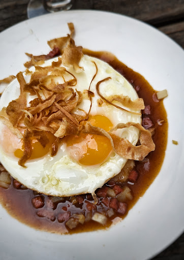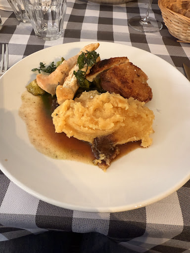 Read moreFollowing recommendations from reviewers here we booked ahead of time to accommodate all 5 of us, including a vegetarian and a dog. We were not disappointed. The food, service and ambience were all delightful. We had 3 course lunch menu which included vegetarian options; a beautiful broad bean soup, followed by a beef or asparagus option (both excellent), desserts were exceptional (and generous) we rolled out very content indeed. Would...