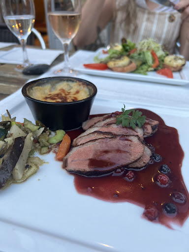 Read moreSeduits par les avis, nous réservons pour déjeuner à 4, à 13h30. On nous explique qu'il n'y aura pas de place en terrasse et que la réservation se fera en salle. Nous arrivons sur place à l heure et par chance, une table en terrasse se libére ! (plus adaptée et agréable avec nos 2 enfants). Un jeune serveur m explique qu'il n'est pas sûr d avoir le temps de nous préparer cette table en terrasse. Il demande à la "gouvernante", apparemment la chef... Sans dire bonjour, elle s adresse très sèchement à moi en m indiquant que la réservation vaut pour l intérieur : soit nous prenons la table, soit d autres le feront. Le ton est vraiment inadapté, l accueil lamentable. Le fait que nous soyons 4 et vue l heure qu'il est, nous nous installons à contre cœur. Le menu (25 euros) est correct et les plats sont bons. Le reste du personnel est agréable (ouf). Nous constatons tout de même au cours du repas que le serveur en terrasse redresse une table pour d autres clients et cela lui prend à peine 2 minutes ! Très déçus par l accueil... Les menus enfants sont un peu légers... Nous ne reviendrons pas. Je suggère une petite formation à l accueil pour la dame qui assure cette fonction ! Ça me paraît...