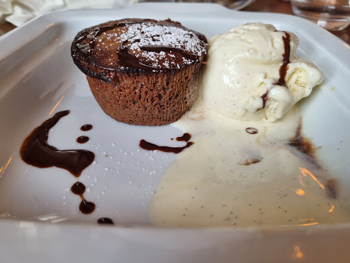 Pour commencer, un petit amuse bouche servit avec l'apéritif, mais il étais froid . Ensuite deux entrecôtes de très belles tailles au premier abord, mais une fois commencer a couper, on s'aperçoit vite qu'elle est très très grasse plus de la moitie de la pièce servit (réponse du serveur, c'est normal, c'est la race de la vache) une sauce au foie gras entre guillemets car cela ressembler juste a de la sauce de viande sans gouts particulier. De plus un gratin de pommes de terre au camembert de taille minuscule où l on cherche encore le goût du camembert tellement peu copieux que nous avons recommander une avoir manger le plat Cette fameuse entrée de duo de fois gras est servit avec deux toast type pain de mie tres cuits fois gras bas de gamme accompagnée de goutte aciduler dans l'assiette essayant de former un decor ( je ne pourrais vous dire ce que c etais ) Toilettes du bas dans un état déplorable pas propre et papier toilette qui traîne par terre, il est écrit sur une jolie affiche au mur que nous devons nettoyer avec des lingettes fournit les wc nous même après utilisation (je cherche encore les lingettes. ) quand vous arriver à l'addition et que vous expliquer le mécontentement, on vous répond que chaque chef a ça façon de cuisiner. Je ne recommande pas du tout cet endroit ce qui est encore une fois bien dommage car vu de dehors ces...