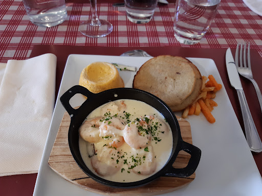 Endroit très convivial dans lequel on se sent bien et choyé, les propriétaires s'investissent pleinement dans leur travail, et ça se ressent dans la qualité du service ainsi que dans la qualité même du repas. Bravo à eux, nous reviendrons manger, assurément. En ce dimanche 13 février 2022, ma femme et moi nous nous sommes régalés avec en entrée une délicieuse croûte aux champignons, suivie d'une fricassée de crevettes à la sauce vanille ( le mariage des goûts était très réussi), d'un faux filet à la sauce béarnaise, le tout accompagné de légumes frais, avec en ajout un peu plus tard une assiette de 3 fromages tous raffinés. Un régal! Et pour terminer, en guise de desserts, une poire pochée au coulis de chocolat noir ainsi qu'une salade de fruits faite maison bien entendu. C'était assurément très très bon. Encore une fois, nos vives salutations au chef ainsi qu'à son épouse qui ne s'est pas ménagée afin de ravir tout le monde.