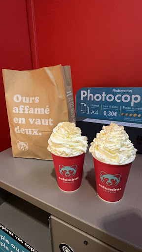 Read moreService à revoir aucun professionnalise, deux jeunes sans aucune formation je pense ! J'arrive je demandes si c'est tjrs ouverts pour les commandes sur place le jh me dit oui...je passe ma commande je remarque vite qu'il avait du mal à la préparer il renversait le premier verre puis le deuxième enfin 15 min pour préparer un café avec un brownie et un cookie, il me redemande si je veux quelque chose d'autre lol ... puis la collègue me dit par contre on sert plus sur place ( la blaaaaague) À 18h55 on sert plus sur place mais on ferme à 19h30 !! Pardon !!! je pensais pas que c'est un restaurant gastronomique la prochaine fois j'appel pour réserver une table à 15h pour quitter...