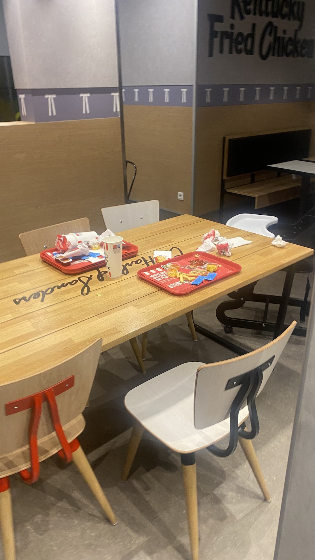 I mean, as far as these modern French KFCs go, it was par for course. Dirty, messy, screaming kids in the play area (I mean the place is dirty and messy, not the kids... The kids are just loud and screeching), drinks downstairs, eating upstairs, a working elevator, but a nice view. Sort of abrupt staff when I posed questions... But hey, I'm the foreigner who does not know the KFC system so that's on me (it's not like this location is probably dealing with lots of non-French tourists coming through!). Typically reliable character ... BUT THIS ONE ALSO DOES NOT SELL CHICKEN PIECES LIKE LEG, THIGH, BREAST, only wings and strips. What...